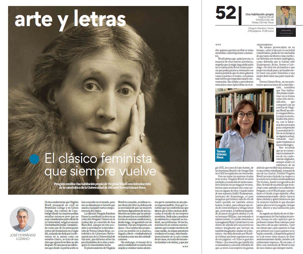 Aquí se puede leer la reseña de la última edición española de ‘Una habitación propia’ (Penguin), escrita por José Ferrándiz. Se ha publicado en ‘Diario Información’, sección Arte y Letras, 13-7-2025.