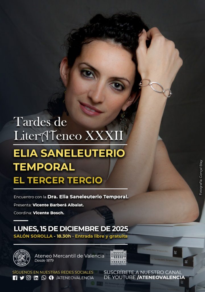 El pasado lunes, 15 de diciembre, a las 18:30 horas, se celebraó una nueva sesión del ciclo Tardes de LiterAteneo, que en esta ocasión contó como invitada con Elia Saneleuterio Temporal.Presentó el acto: Vicente Barberá Albalat.Coordinado por: Vicente Bosch.Tuvo lugar en el Salón Sorolla del Ateneo Mercantil de Valencia, Pl. del Ayuntamiento, 18 – 5ª »more