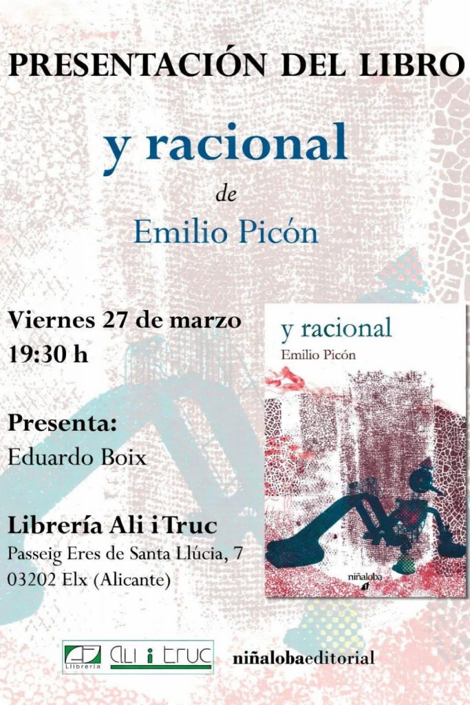 El pasado viernes, 27 de marzo, a las 19:30 horas se presentó el libro Y RACIONAL, de Emilio Picón. Eduardo Boix intervino junto al autor. Fue en la Librería Ali y Truco, Paseo Eras de Santa Lucía, 7 – Elche (Alicante).