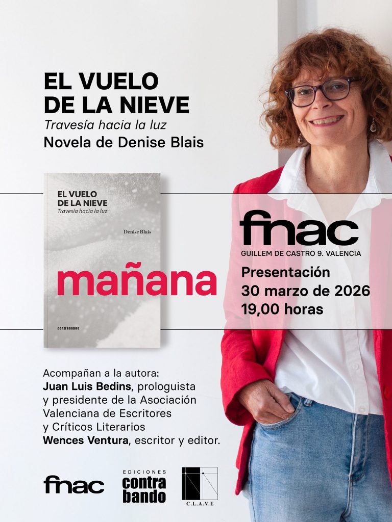 Presentación de “El vuelo de la Nieve”, una novela ambientada en Montreal, en la que la protagonista se ve arrojada a su pasado, atravesando el invierno canadiense en busca del amor verdadero.Su autora, Denise Blais, acompañada por Juan Luis Bedins (escritor, poeta y presidente de CLAVE) y Wences Ventura, la presentaron en FNAC Valencia el »more
