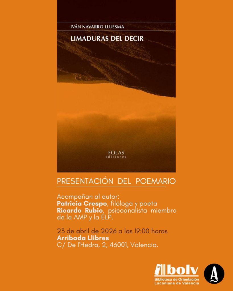 El pasado jueves, 23 de abril, a las 19:00 horas: se presentó el poemario ‘LIMADURAS DEL DECIR’ (Eolas Ediciones, 2026), de Iván Navarro Lluesma.Acompañaron al autor: Patricia Crespo y Ricardo Rubio.El acto tuvo lugar en Arribada Llibres, C/ de L’Hedra, 2 – Valencia.