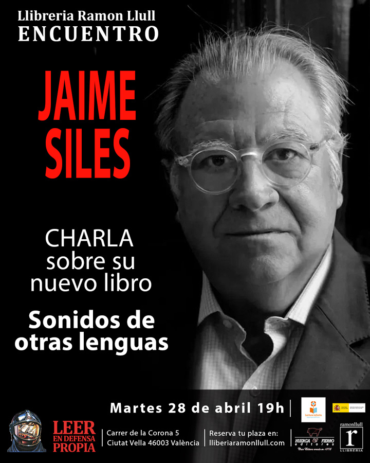 El pasado martes, 28 de abril, a las 19:00 horas, se celebró el ENCUENTRO/CHARLA sobre el nuevo libro de Jaime Siles, titulado ‘SONIDOS DE OTRAS LENGUAS’ (Huerga & Fierro, 2026).El acto tuvo lugar en la Llibreria Ramon Llull, C/ Corona, 5 – Valencia.