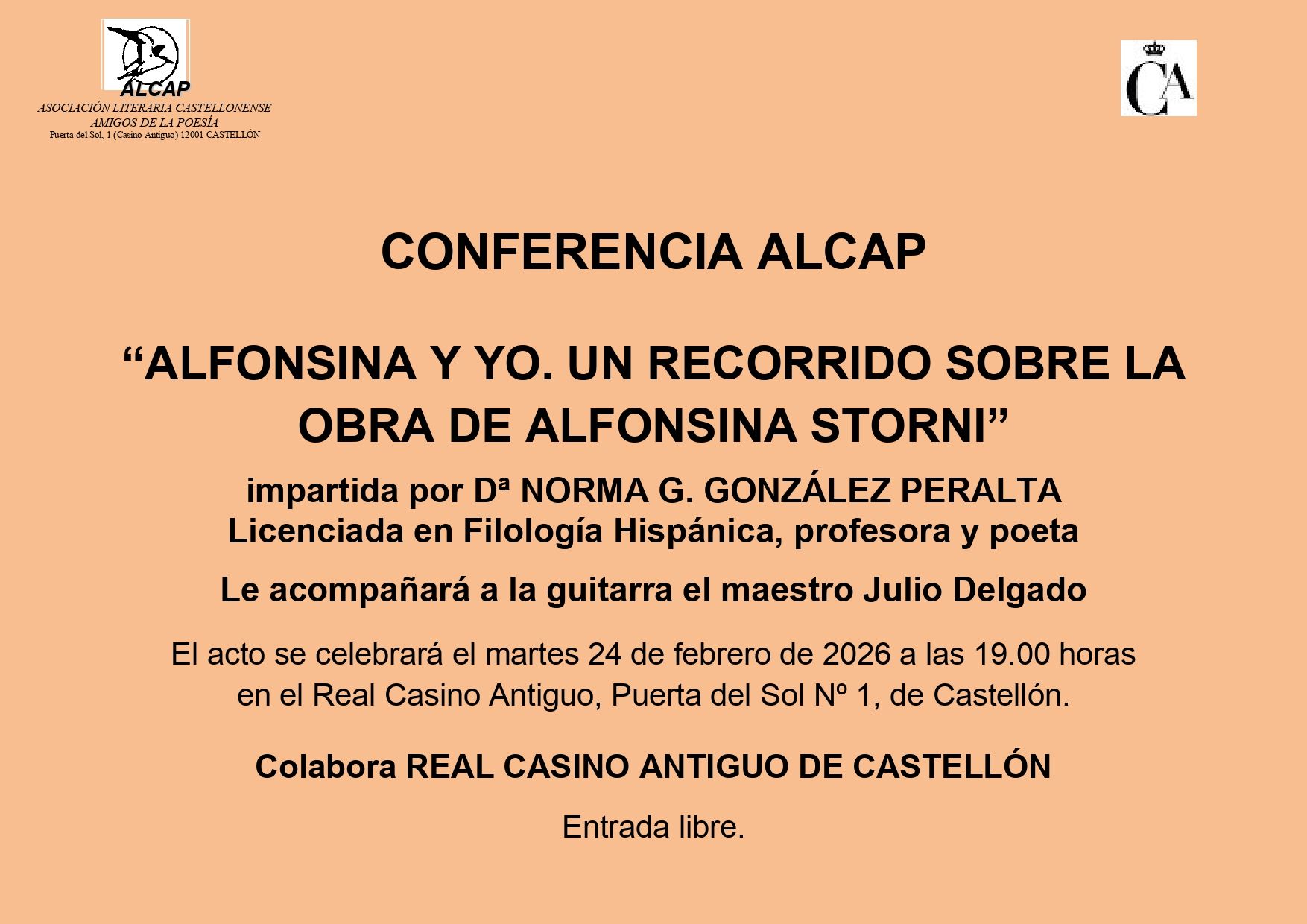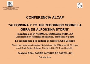 El pasado martes, 24 de febrero, a las 19:00 horas, Norma González Peralta impartió la conferencia titulada ALFONSINA Y YO. UN RECORRIDO SOBRE LA OBRA DE ALFONSINA STORNI.