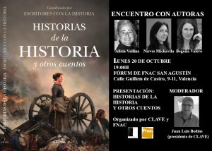 El pasado 20 de octubre tuvo lugar un encuentro con las autoras Begoña Valero, Alicia Vallina y Nieves Michavila. Juan Luis Bedins, presidente de CLAVE, condujo el evento. El libro ha sido coordinado por Escritores con la historia. El evento está organizado por CLAVE yFnac España.