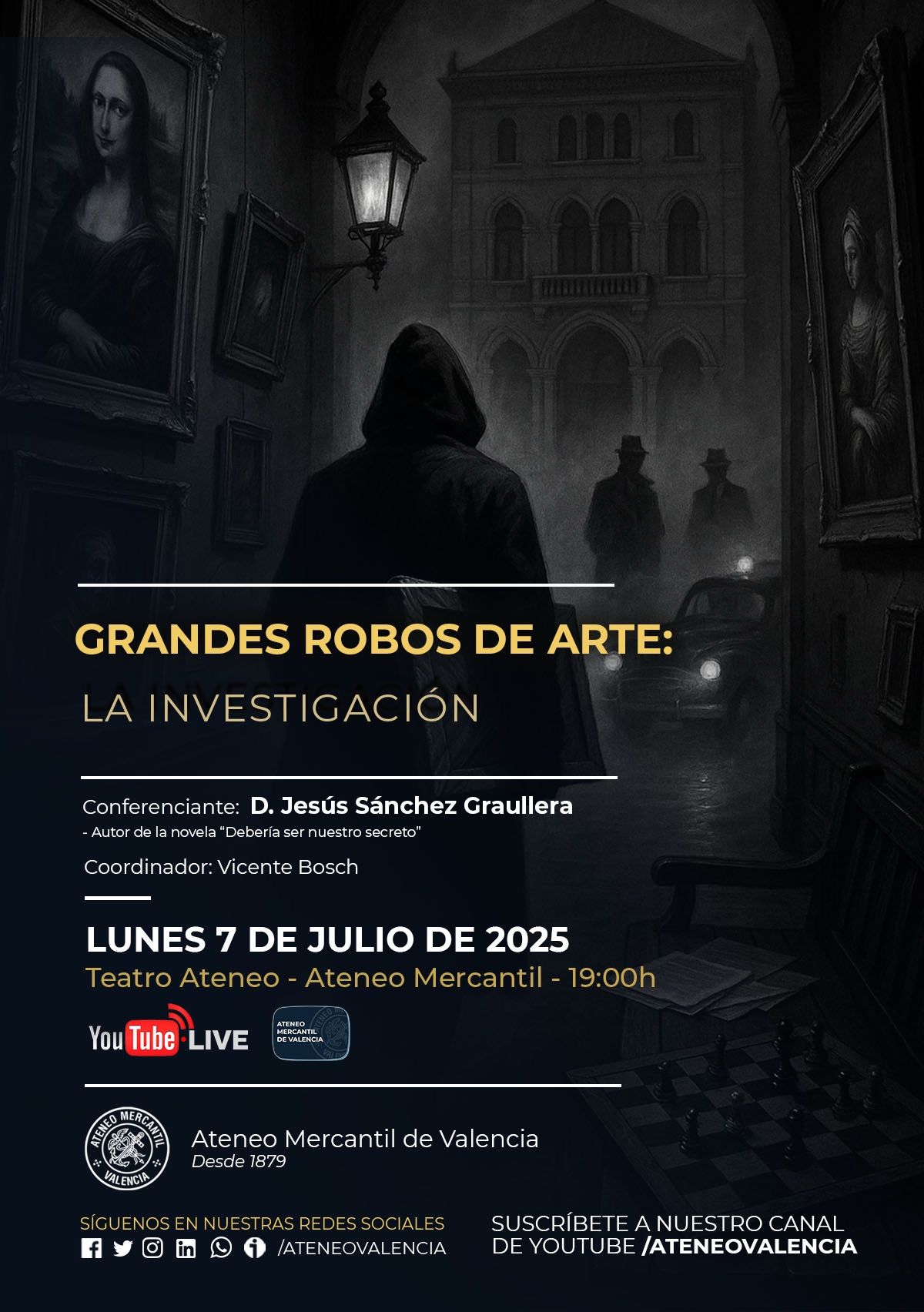 El pasado lunes, 7 de julio, a las 19:00 horas, el escritor y socio de CLAVE Jesús Sánchez Graullera dio una conferencia bajo el título GRANDES ROBOS DE ARTE: LA INVESTIGACIÓN.