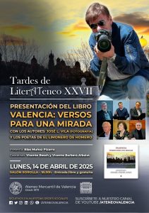 En una nueva edición del ciclo Tardes de LiterATeneo XXVII (Ateneo Mercantil de Valencia) el poeta valenciano BLAS MUÑOZ presentó el pasado 14 de abril de 2025 el libro VALENCIA: VERSOS PARA UNA MIRADA,