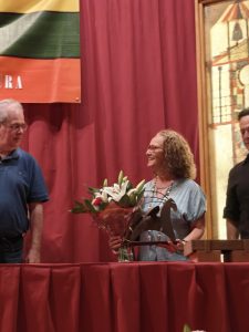 «Mar Busquets Mataix recibió el trofeo de manos de Fernando de la Cruz, escultor y diseñador del galardón.
