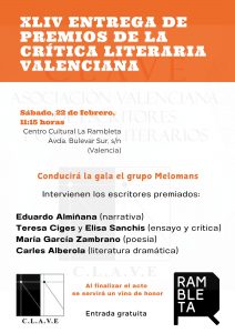 RAMBLETA ACOGELOS PREMIOS DE LA CRÍTICA LITERARIA VALENCIANA